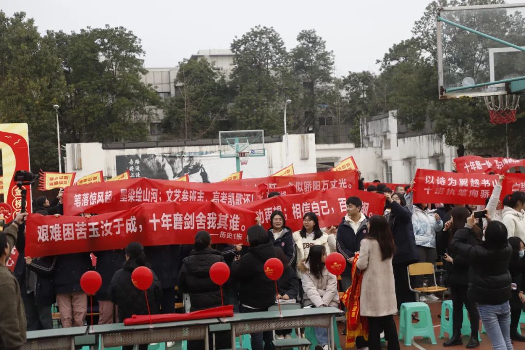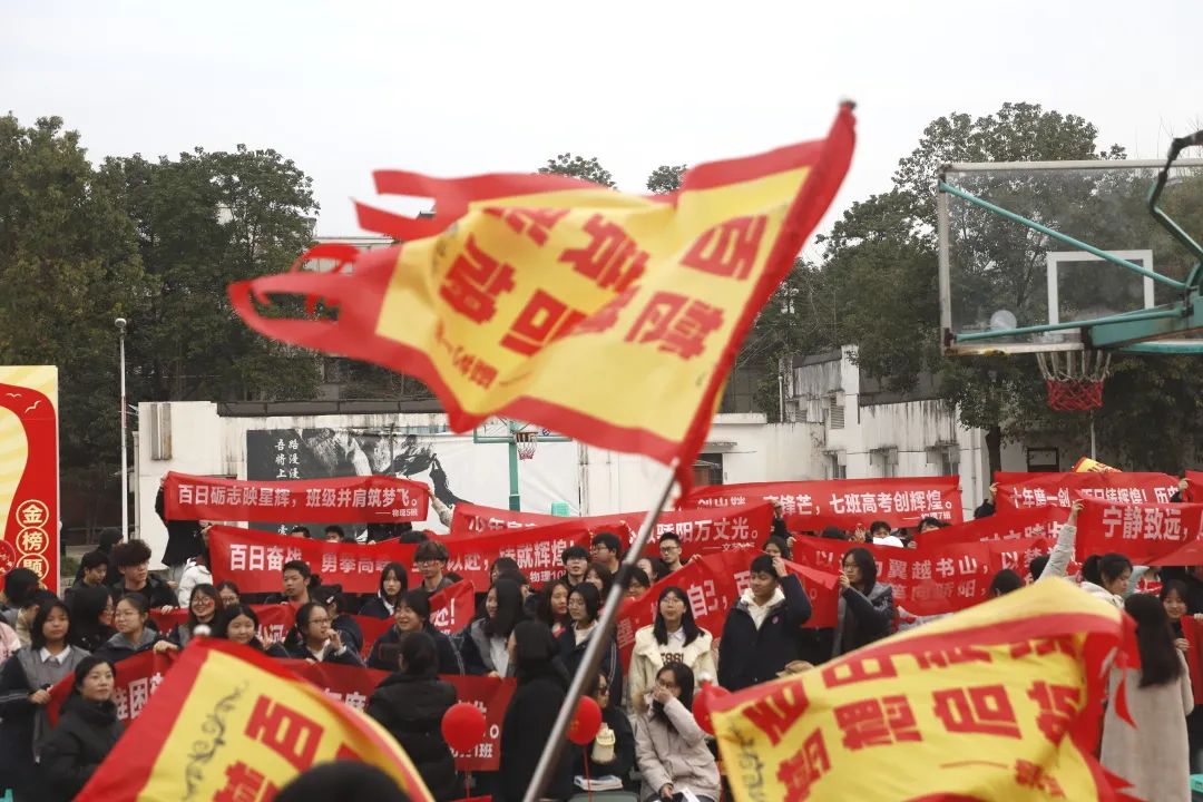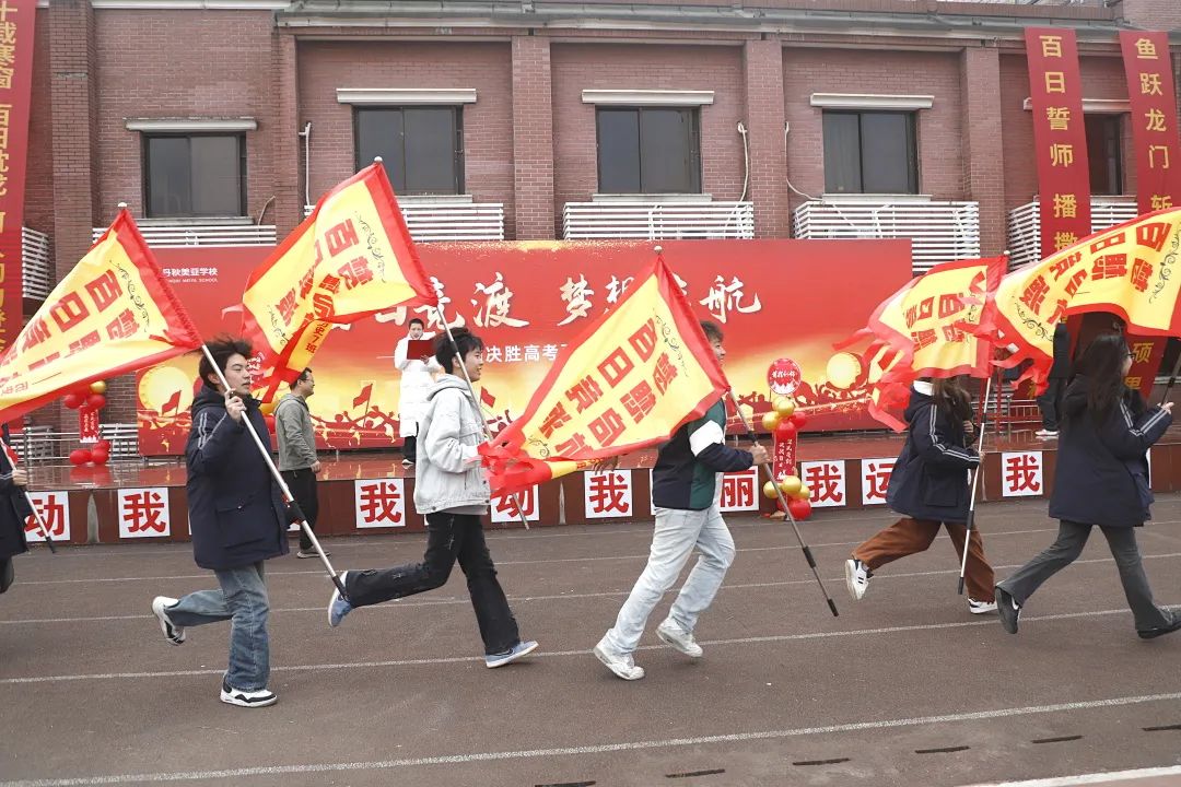 战鼓声声,旌旗猎猎。一面面鲜艳的红旗在春风中迎风招展,仿佛在为即将踏上高考征途的学子们呐喊助威,鼓舞士气。